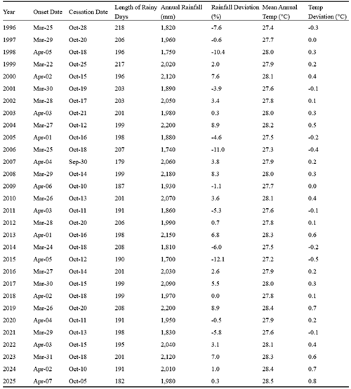 Table 3 Rainy season, rainfall and temperature in Ilaje LGA (1996-2025) Source: Nigerian Meteorological Agency (NiMet), 2025 |