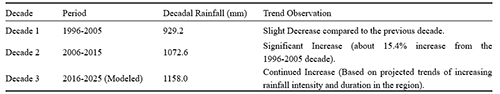 3.9 Decadal variation of climatic variables: Rainfall (1996-2025)