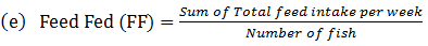This study was conducted at the Department of Fisheries and Aquaculture, University of Agriculture Makurdi, Benue State, Nigeria. Hatchlings of Nile tilapia were collected from the mouth of females maintained in outdoor earthen pond at the Fisheries Research Farm. Half of the hatchlings were move indoor for hormonal administration following the methods described by Olufeagba and Okomoda (2015). Fish for sex reversal were maintained in a well aerated 60 x 30 x 30 cm3 glass aquaria tanks. One hundred grammes (100 g) of coppens® powdered feed were mixed with 30 μg of 17 α-methyltestosterone (Sigma E-4876) (already dissolved in 95% ethanol). This was mixed in a plastic bowl and oven-dried at 65°C for one hour. The prepared feed was fed for twenty-eight days before the commencement of this study. Triplicate batches each of fifty hormonal sex reversed and fifty mixed sex tilapia fingerlings were transferred into six outdoor rearing tanks where they were fed with coppens® commercial diet (45% CP) for twenty-four weeks. Water quality parameters such as temperature, conductivity, total dissolved solids and pH were monitored fortnightly using a digital multi-parameter water checker kit (Hanna water tester, Model HL 98126, Made in Romenia). Fish were fed twice daily (08:00 am and 06:00 pm) at 5% body weight. The fish were weighed weekly to determine new weight gain and adjust rations based on the new body weight gain. Growth performance and nutrient utilization were assessed at the end of the experiment using the equations below.