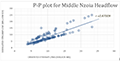 This figure shows a time series plot of streamflow for the Middle River Nzoia Headflow. The time-series pattern for the Middle Nzoia Headflow indicates clear seasonal and interannual variability in streamflow between January 2000 and January 2010. Streamflow peaks generally occurred during the same periods each year, reflecting the influence of rainfall seasonality and catchment hydrological processes, whereas the lower flows corresponded to dry-season conditions. Overall, the simulated streamflow followed the observed pattern closely, indicating that the WEAP model was able to reproduce the temporal dynamics of streamflow reasonably well. The agreement between the two series was particularly strong during low-flow periods, where the simulated and observed values were nearly overlapping, suggesting that the model performed well under baseflow conditions. This close correspondence supports the suitability of the model for water resources assessment, planning, and forecasting in the Middle Nzoia Catchment.