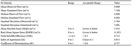 5) Calibration Metrics: The performance of the calibration process was evaluated using statistical indicators such as Nash-Sutcliffe Efficiency (NSE), Mean Absolute Error (MAE), and Root Mean Square Error (RMSE).