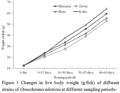 Figure 5 Changes in live body weight (g/fish) of different strains of Oreochromis niloticus at different sampling periods |