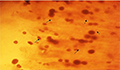 Figure 11 Showing fresh mount of gill tissue infested heavily with Amyloodinium ocellatum (trophont and tomont stage first division (Arrowheads) |