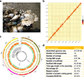 Figure 1 a Estuarine oyster (photo by Lumin Qian). b Hi-C interaction heatmap showing 10 chromosomes of the estuarine oyster. c CIRCOS plot showing 10 chromosomes (a), the distribution of GC content (b), transposable elements (c), coding sequences (d), and duplicated gene cluster of the solute carrier families showing selection signals (e, also see Supplementary Figure 13). d Summary statistics of the genome assembly (Adopted from Li et al., 2021) |