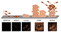 Figure 1 Biofilm development. Free-swimming bacteria initially attach to a solid surface, and colonizing bacteria further form structured aggregates called microcolonies. Biofilms are composed of numerous microcolonies, which are encased in an extracellular polymeric matrix. Biofilms permanently undergo composition/decomposition. Confocal Laser Scanning Micrographs of Klebsiella oxytoca M5aI biofilm formation (Adopted from Weiland-Bräuer, 2021)