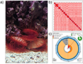Figure 1 Ctenoides ales and summary of its genome assembly (Adopted from McElroy et al., 2024) Image caption: (A) Adult Ctenoides ales in aquarium setting, flashing light display visible in middle individual. Image credit: Jeanne M Serb. (B) Hi-C contact map for C. ales, highlighting the 18 chromosomes recovered from the genome assembly. Darker red indicates higher density of contact, blue and green boxes denote chromosome and contigs, respectively. (C) Snail plot summarizing key assembly statistics for final C. ales assembly with BUSCO results (Adopted from McElroy et al., 2024) |
